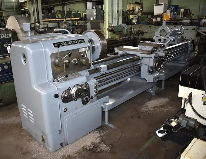 1981 Daewoo-Ikegai DA25 High-Speed Precision Engine Lathe. Features a 25" swing, 120" centers, 2.2" spindle bore, and 15 HP motor. Equipped with a 4-jaw chuck, taper attachment, and inch-metric threading. Ideal for precision-engineered projects.