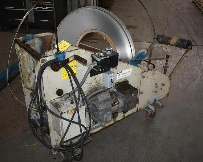 1200 LB DURANT model 1010 portable motorized coil cradle, ideal for coil lifting and handling. Features include a max load of 1200 lbs, 10" max coil width, and up to 90 FPM speed. Complete with casters for easy mobility.