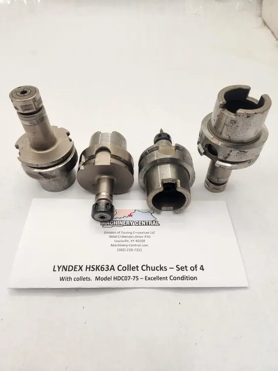 LYNDEX HSK63A Collet Chucks – Set of 4 w/Collets Model HDC07-75