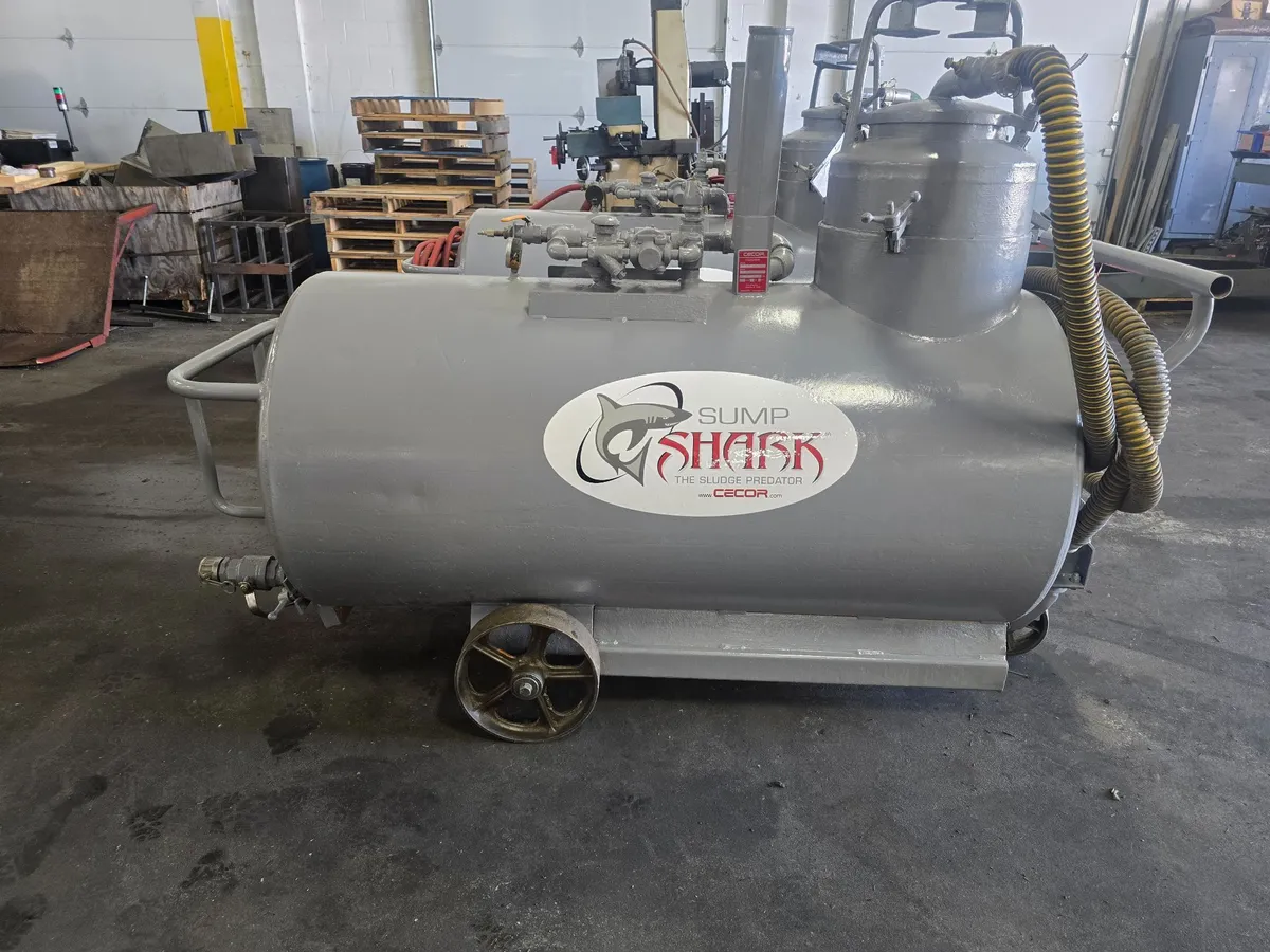 CECOR SA5-140PT used sump sucker available for purchase. Features include a 140-gallon tank, air-operated venturi pump with rates up to 110 GPM, F23 filter, and auto overfill protection. Professionally cleaned and ready for use.