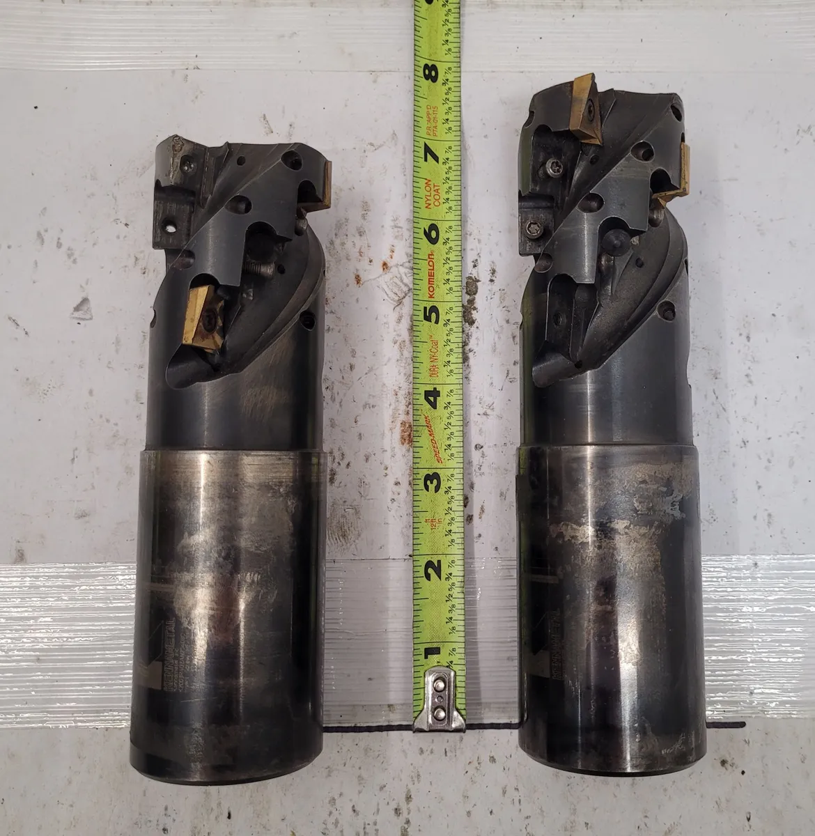 Kennametal 2" Indexable Milling Cutter, model K2003R402AN25408C. Includes two units: one approx. 7" and the other 7.5" in length. Ideal for mill tooling applications. Professional-grade equipment in used condition.