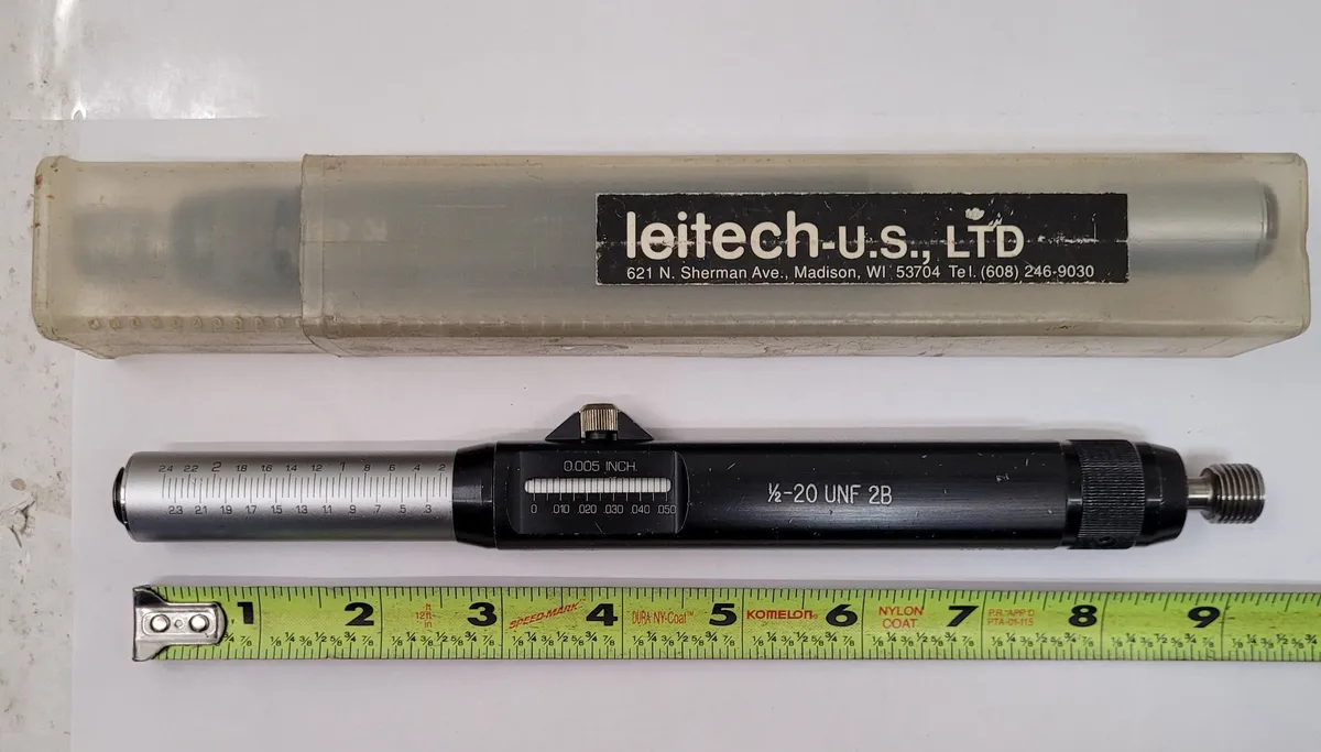 LEITECH 1/2-20 UNF 2B Depth Thread Plug Gage by Leitech-US. Model: THREAD PLUG GAGE. Tooling & Accessories. Used condition. Includes a lot of 2 with PDs: .4675, .4731. Ideal for precision gauging needs.