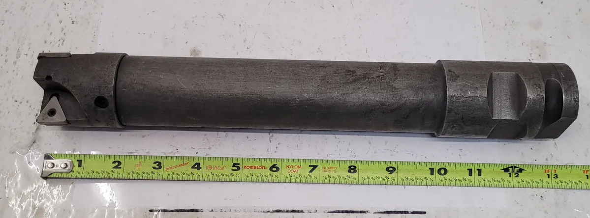 Milling Specialties EC 20 TO Indexable Face Mill, used condition. Key features: 2" diameter shaft, 11.25" length, 13.25" overall length, and 2" diameter cutter end. Includes 7/64” insert screw size, requires an Allen wrench.