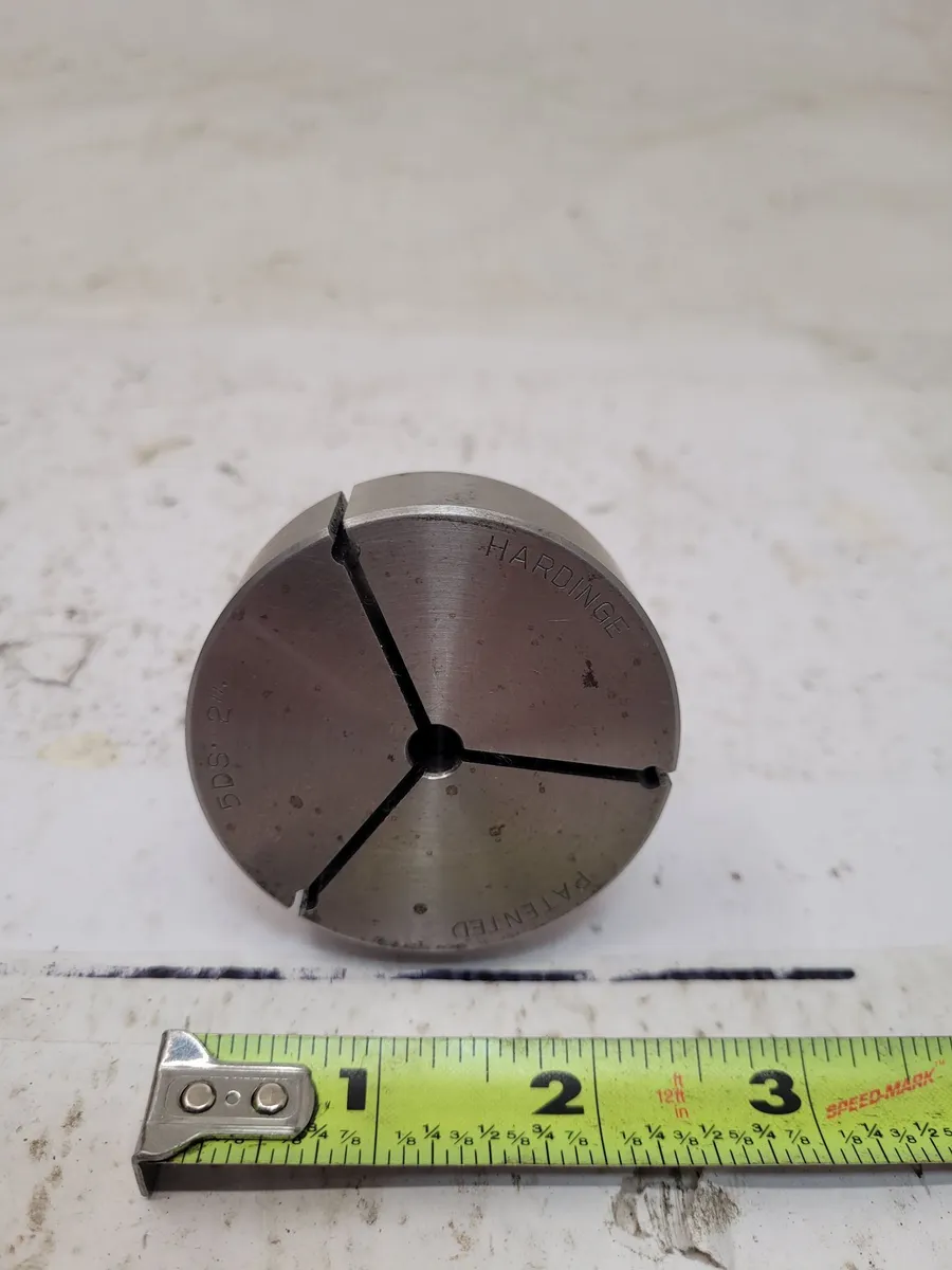 HARDINGE 5DS 2" Step Collet for sale. Ideal for tooling and accessories needs, this used collet features a 2-3/8" head diameter and is approximately 3" long. Perfect for enhancing your machine operations with HARDINGE precision.