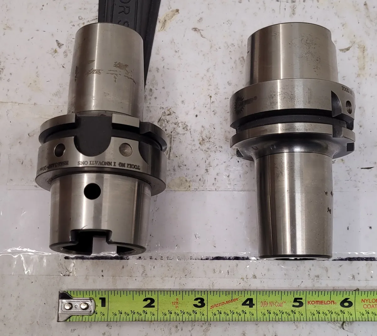 TOOLING INNOVATIONS HSK63ASF-20MM-315 shrink fit tool holder set of 2, used. Features 4.5" OAL, .75" tapered end ID, 1.34" inner arbor diameter, 1.84" outer arbor. Ideal for precision industrial tasks.
