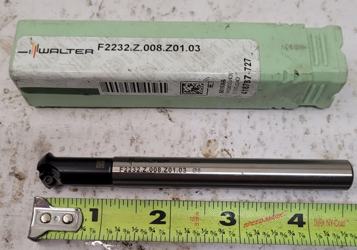 Boost your machining precision with the Walter Indexable Mill Cutter F2232.Z.008.Z01.03. This used cutter features a .315” cutting diameter, .137” max depth cut, and 4.724” overall length, providing versatility and reliability for your toolset.