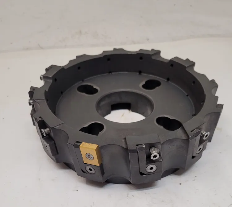 Ingersoll MAX-I-CUT 8" Face Mill for sale. Model 6G3K08R01 by INGERSOLL CUTTING TOOLS. Used condition, right-hand orientation, 2.5'' arbor, 8" diameter, 7" hub, 2.25” OAL, and equipped with 12 flutes/inserts.