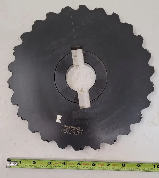 Ingersoll 36J6B1012-01, a used 10" indexable slot milling cutter by INGERSOLL CUTTING TOOLS, features a 2" arbor and 0.67" thickness. Ideal for precise machining tasks, it's a robust tooling accessory for your workshop.