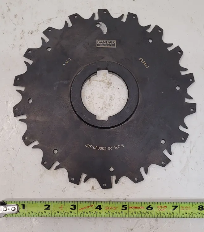 Sandvik Coromant S-330.20-200030-230 T-Max Slitting Q-Cutter available. Tooling & accessories type, used condition. 7.75” overall diameter. Limited stock: 4 total, 3 new, 1 like new. Priced per item.