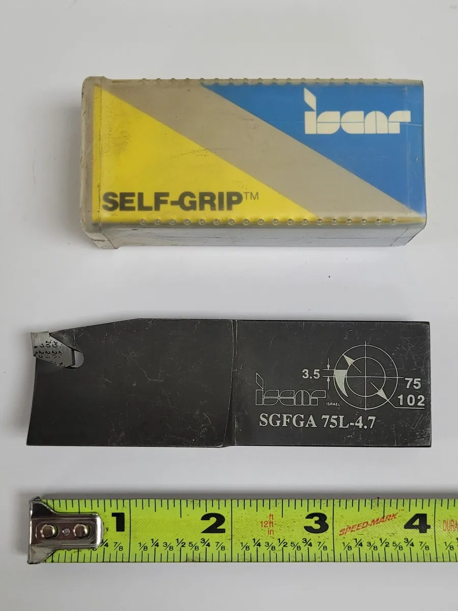 ISCAR Self-Grip SGFGA 75 L-4.7 parting & grooving blade, Item #ISC2300433, offers precision tooling. Specs: 1.25" shank width, 0.18" insert width, 3.98" overall length. Enhance your setup with this reliable used blade.