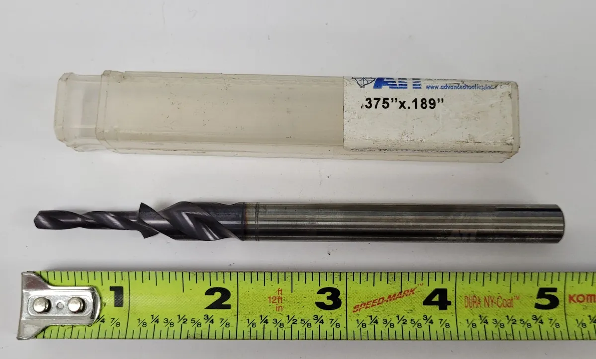 Advanced Tooling Inc's new 0.375" x 0.189" drill is ideal for precision tasks. Featuring a .375" shank, .189" tip, 5" overall length, and 2 flutes for efficient performance. Perfect for professionals in tooling and accessories.