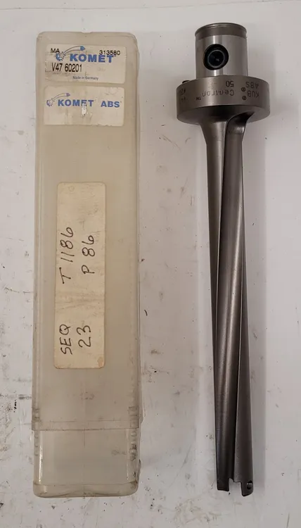 New Komet KUB Centron V47 60201 indexable insert drill, perfect for precision drilling. Features a .75" cutting diameter, 9.57" overall length, and right-hand design. Ideal for professionals seeking reliable tooling accessories. Item #1488896.