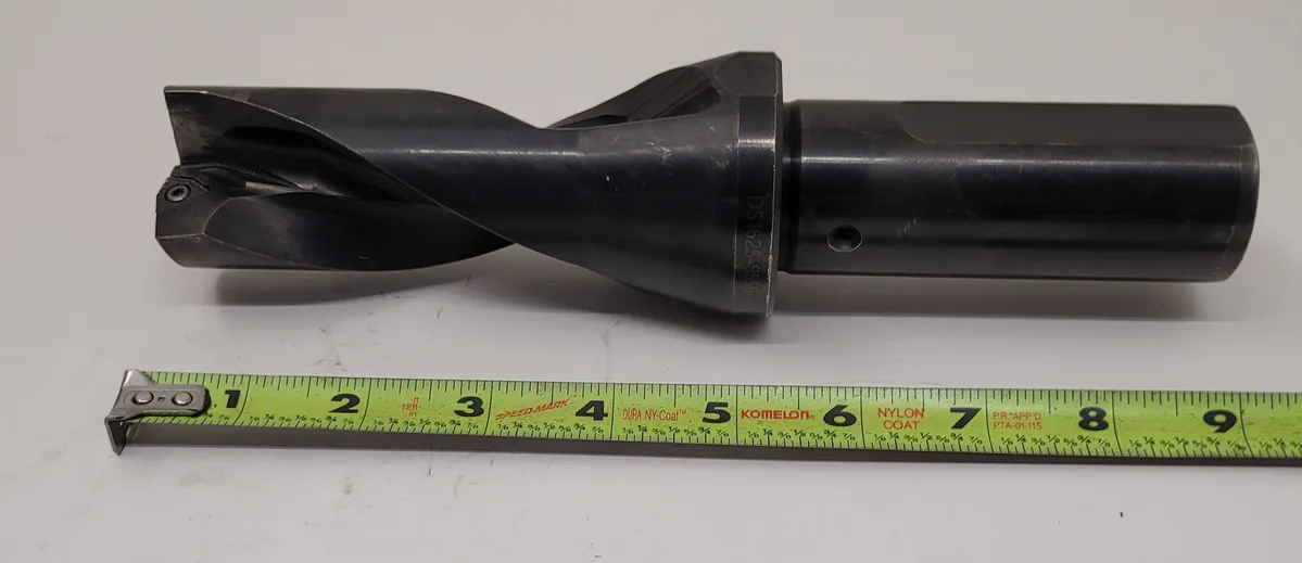 Iscar DS1625-3656-150-3 Indexable Drill, used in tooling and drilling. Cutting diameter 1.625", overall length 9.25". Features 2-flute design and coolant through. Ideal for precision tasks.
