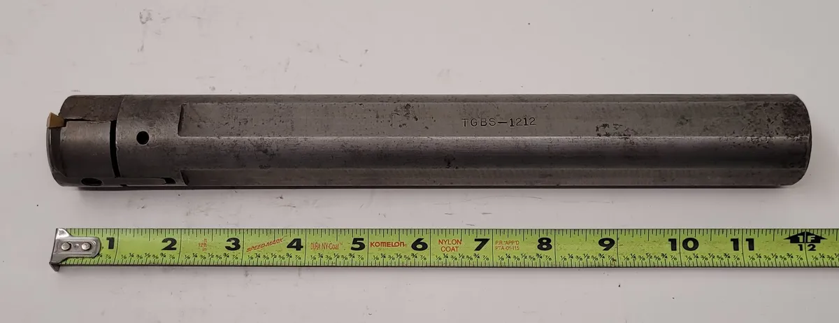 TG Boring Systems TGBS-1212 boring bar threading tool for sale. Features a 12" overall length, 1.5" shank diameter, and right-hand orientation. Ideal for tooling and accessories needs. Used condition.