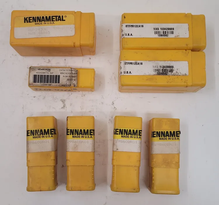 Kennametal Indexable Tool Cartridges for sale: Set of 8 with various models. Includes KU-2430C NJ8, KRCSCSFPR063B, 4x 2989608R01, and 2x STFPR12CA16. Ideal for tooling and accessories needs. Condition: used.