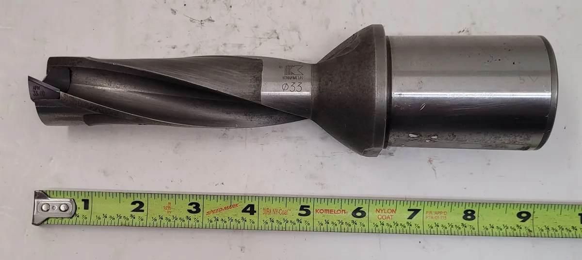 Used Kennametal KSEM330R3WD50M thru coolant drill available. Features a drill diameter of 1.2992-1.3386 in, 8.937 in overall length, and 3.8976 in max drilling depth. Ideal for precision drilling tasks.