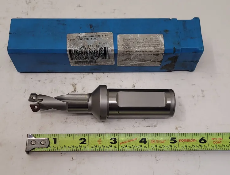 Enhance your tooling operations with the AMEC 091211-53 GEN3SYS Indexable Drill by Allied Machine. Featuring an 18mm diameter, 1" shank, and 4.90" OAL, this used drill is ideal for precise drilling applications.