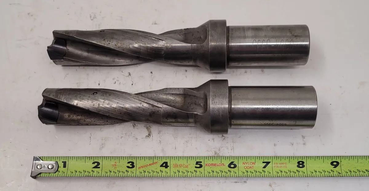 Kennametal KSEM1156R3SSF125 indexable drill set of 2. Used tooling & accessories for drilling. Features 1.156" cutting diameter, 1.25" shank diameter, and 8" overall length with coolant through. Ideal for precision drilling tasks.