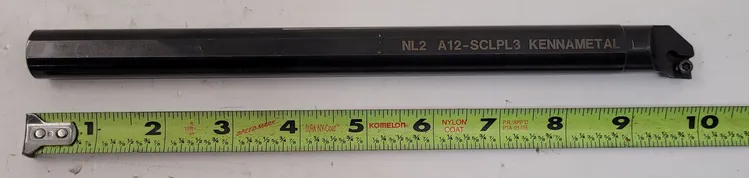 Available: Kennametal A12-SCLPL3 Indexable Boring Bar. Left-hand holder, shank diameter 19.05mm (3/4 inch), 254mm (10 inches) long. Minimum bore diameter 23.62mm (0.9300 inch). Neutral rake, -5 lead angle. Used condition.