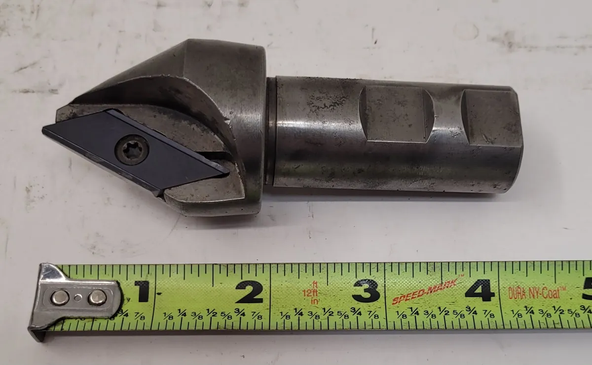 Tungaloy CC3100560-30 indexable insert chamfer tool, 1" shank diameter, 4.5" overall length, and a 1.56" body diameter in used condition. Ideal for precise chamfering with a 1 flute, 2" long design.