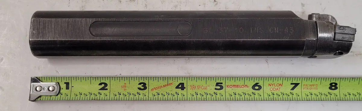 KENNAMETAL BL-37 10 INS CN 43 indexable insert boring bar, used. Features a 1.25" shank diameter, right hand operation, 8” overall length, and a 2” head diameter. Ideal for precision tooling and boring tasks.