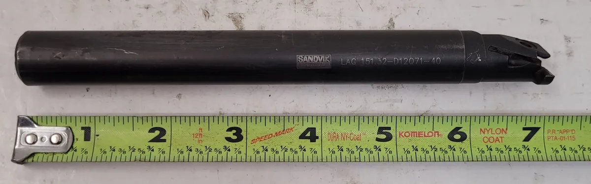 Sandvik LAG 151.32-D12Q71-40 T-Max Q-Cut boring bar by Sandvik Coromant. Used condition, left-hand cutting, compatible with N151.3-400-40-4G inserts. Min Bore Dia: 0.7086 in, Max Bore Depth: 0.2066 in, Overall Length: 7.0866 in, Shank Dia: 3/4 in.