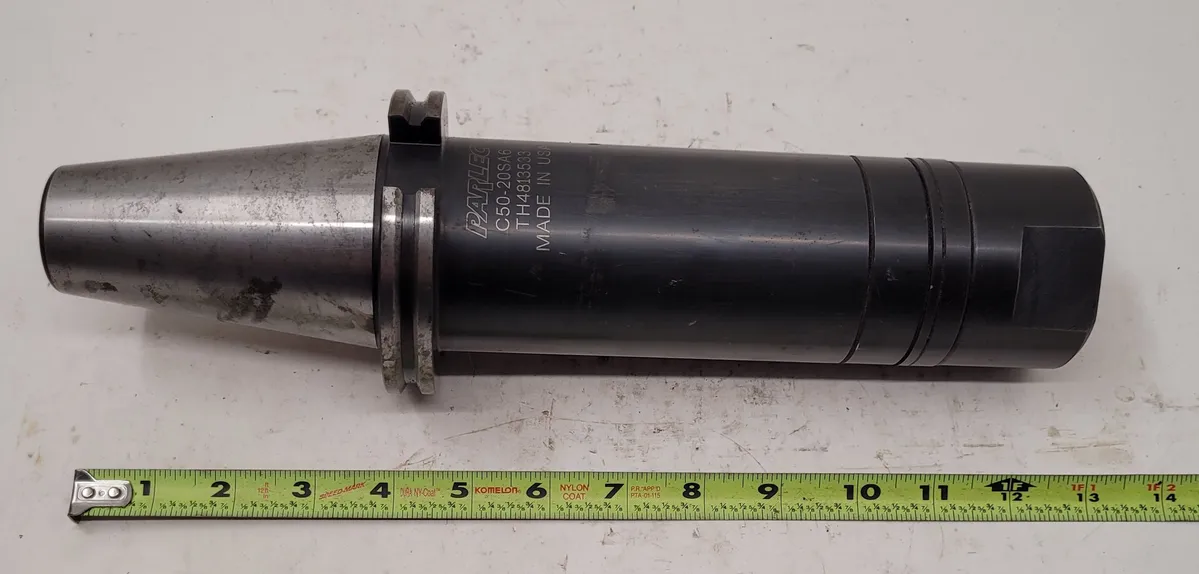 PARLEC C50-20SA6 Stub Arbor Holder available. Features a CAT 50 taper shank, 9in projection, 2.75in nose diameter, and 13in overall length. Ideal for your tooling needs. Used but maintained to enhance functionality.
