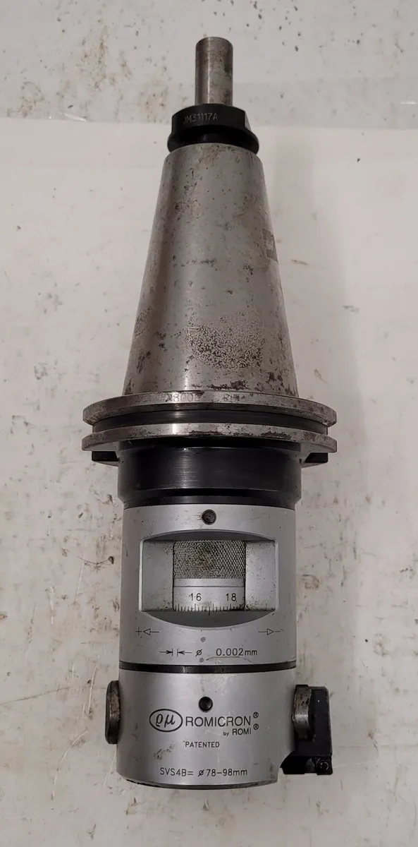 Kennametal KR50SVS4B094M ROMICRON fine boring head, used. Features a 78-98mm range with a CAT 50 holder. Max RPM: 4500. Perfect for precise machining tasks. Assembly length: 94mm, max body diameter: 65mm. Ideal for enhancing your tooling setup.