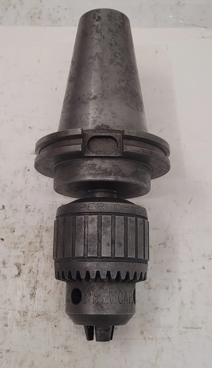 JACOBS Ball Bearing Chuck 16N 3JT with CAT 50 Holder, used condition. Ideal for tooling and drilling applications, accommodating 1/8-5/8in (3-16mm) capacity.