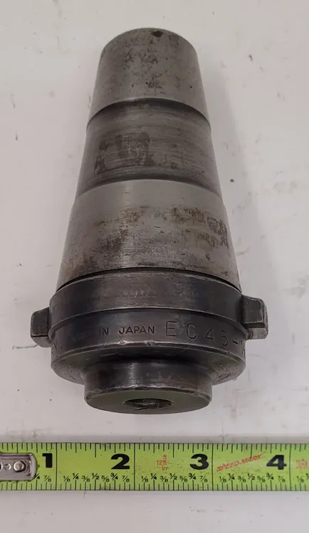 Nikken EC45-12 End Mill Holder, Cat 45 used tooling with 4-3/4in OAL and 1/2in bore diameter. Body diameter is 1.50in with a 1-1/4in projection. Ideal for precision tasks, model EC45-12, by NIKKEN.