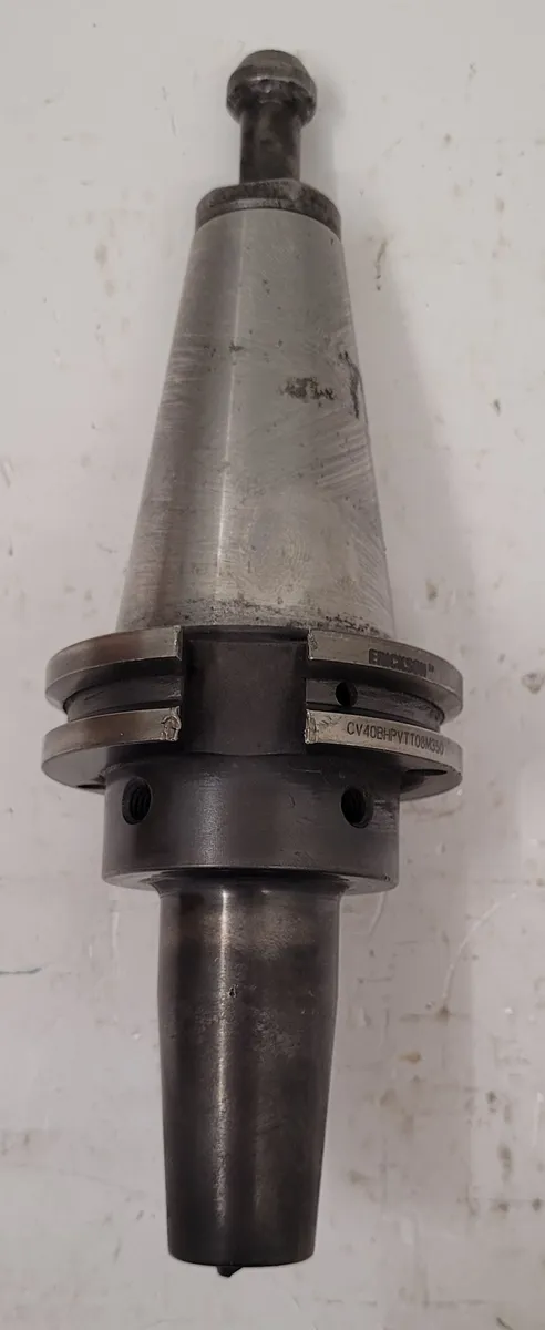 ERICKSON tool holder CV40BHPVTT08M350, used CAT 40 with an OAL of 6.25-7.5 inches, body diameter 1.75 inches, and 3-3/8 inch projection. Max RPM: 15000. Ideal for precise tooling needs. Durable design for reliable performance.