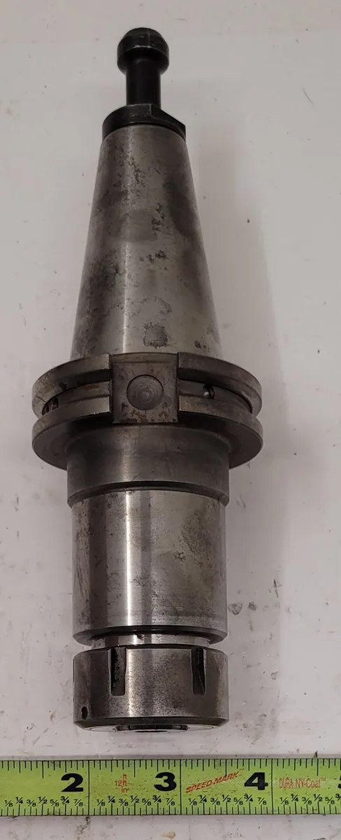 Lyndex C4017-0025-4.00 Collet Chuck, used, for sale. Features CAT 40 holder, 6.5” OAL, 1.75” body diameter, 1.65” nut diameter. Max RPM: 18000. Ideal for various tooling applications. Priced per unit; check availability in last photo.