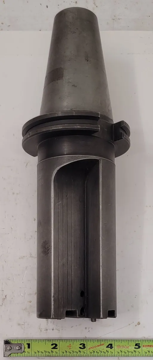 AMEC VMAXX OP3-1S-CV50 Indexable Body Drill by Allied Machine & Engineering. Used condition, CAT 50 holder, 3-4.12" diameter, 5-7/64" depth, 6-3/4" gage length. Includes 4 inserts, rear coolant through shank, straight flute, 2 flutes.