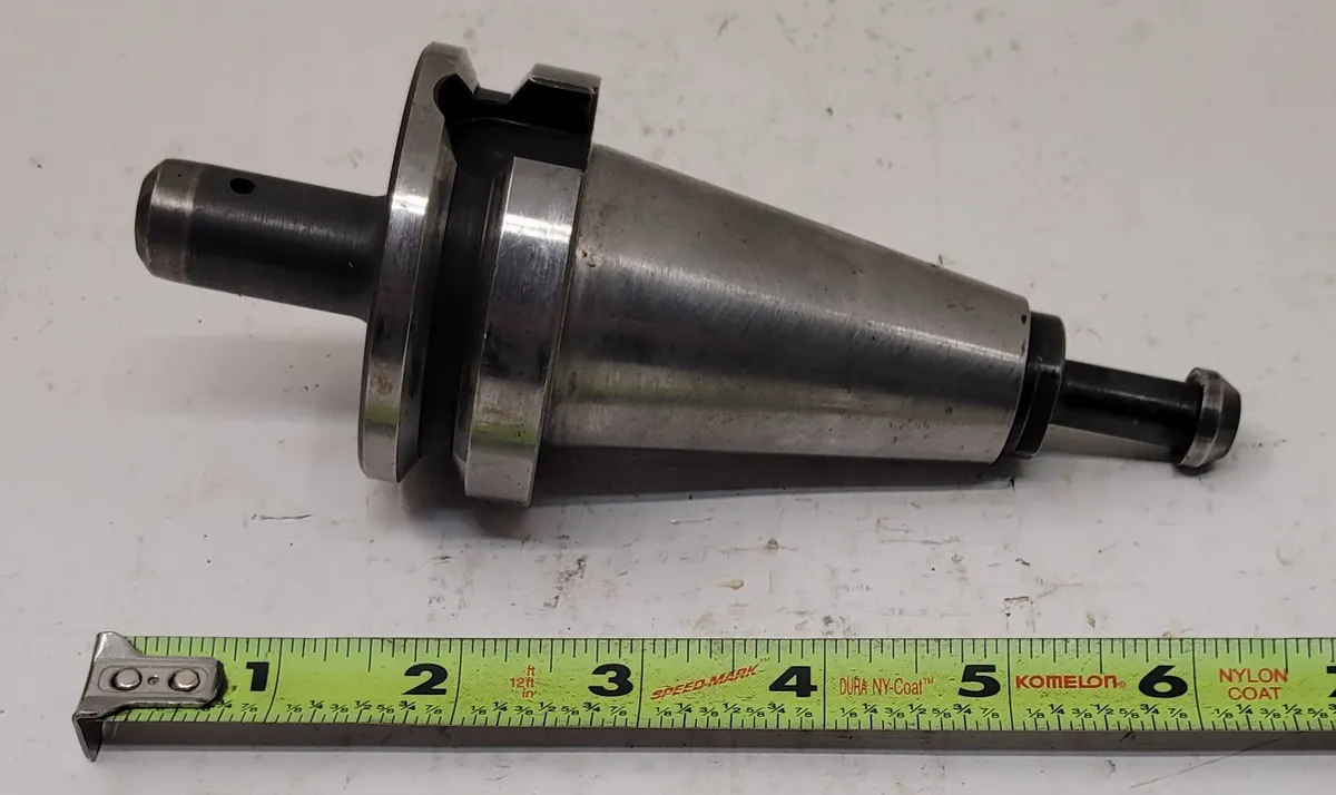 Used Command CAT 40 Tool Holder. OAL: 5-1/8” (6.5” with button), Projection: 2.375”, Bore Diameter: 5mm, Body Diameter: .69”. Ideal for precise tooling tasks.