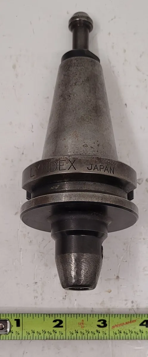 Lyndex B4006-0375 BT40 Taper Shank End Mill Holder, used but in good condition. Features a 3/8" bore, 5” OAL, and 2.5” projection. Ideal for precise machining needs. Enhance your tooling setup with this reliable accessory.