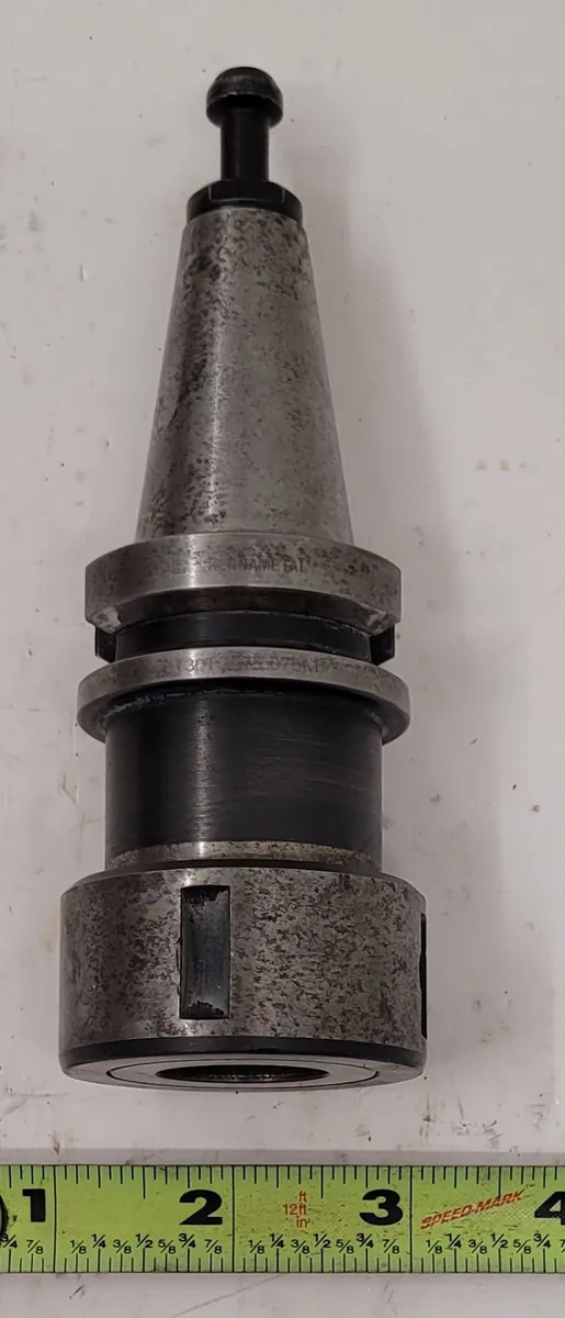 Kennametal BT30TG075075M CAT 30 Taper collet chuck, used but functional. Features CAT 30 taper size, TG75 collet series, 50mm lock nut diameter, and 75mm gage length. Precision tooling and accessories. See spec sheet for full details.