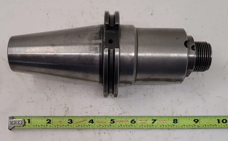 Used CAT 50 Collet Chuck with 4.75" projection, 1.00" hole diameter, and 2.50" body diameter. Total length is 9". Nut not included. Ideal for tooling and accessories needs.