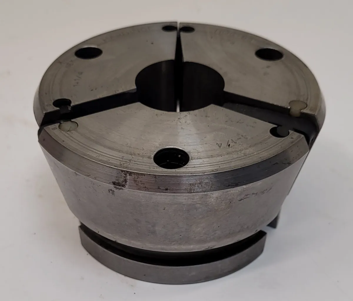 Hardinge HQC-65 1-1/4in Quick Change Collet, used; 2.25” height with non-serrated interior. Needs new slot inserts. Ideal for tooling and accessories. Perfect for those looking for Hardinge quality at a great value.