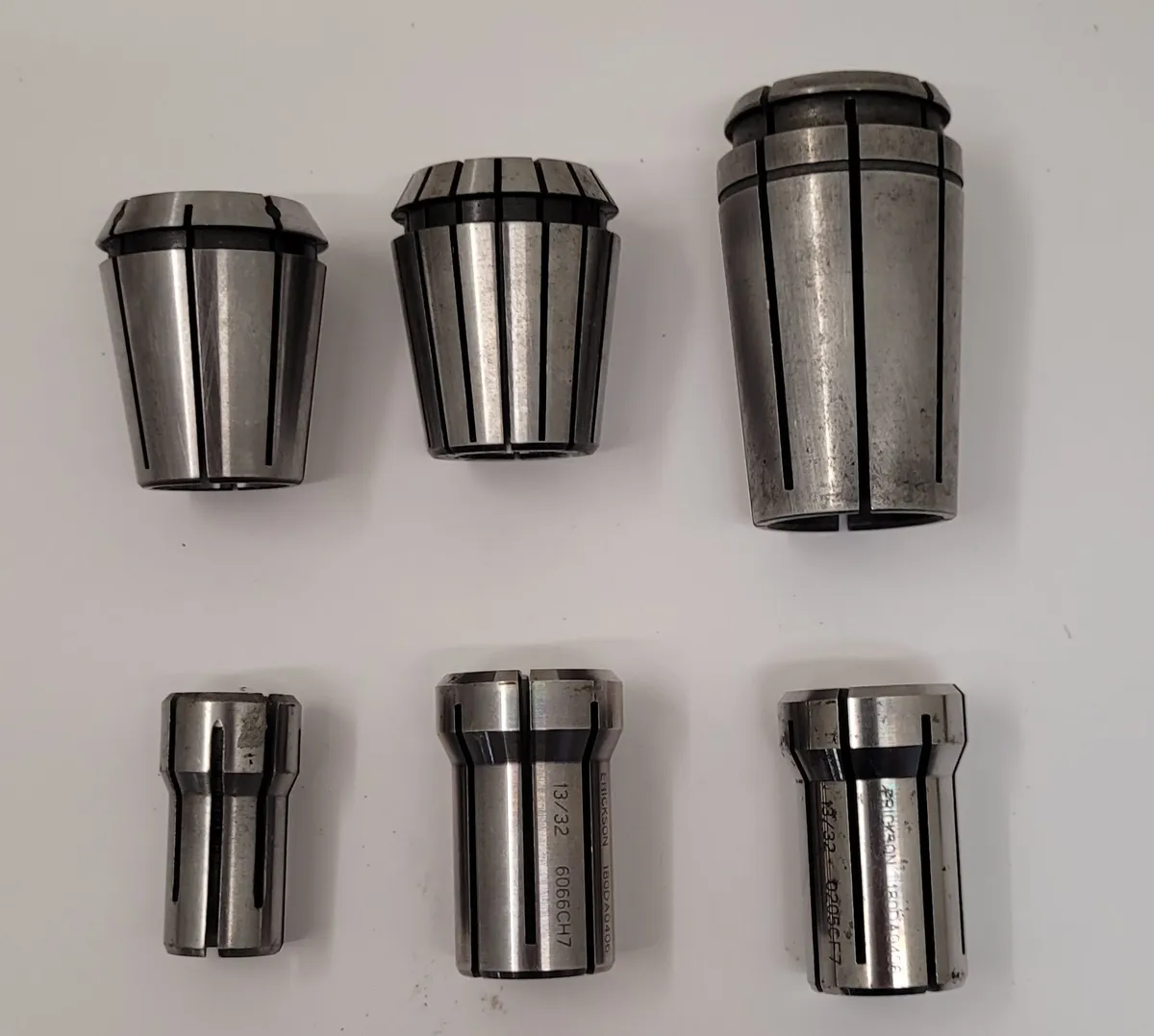 Used Unbranded Collet Set, 6 pieces, includes sizes 13/32" to 15/14". Enhance your tooling collection with these accessories. Ideal for various applications, offering a practical solution for professionals seeking versatility.