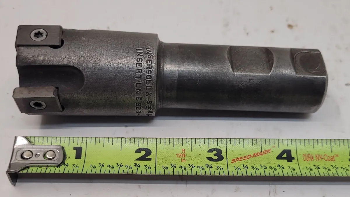 Ingersoll K-83581-2 / 600 B15 R02 MAX I CUT Indexable Mill Cutter, used and in good condition. Features: OAL 4.50”, 4 flutes, 1.35” cutting diameter, straight shank 2-3/8” long, 1.00” shank diameter. Ideal for precise cutting tasks.