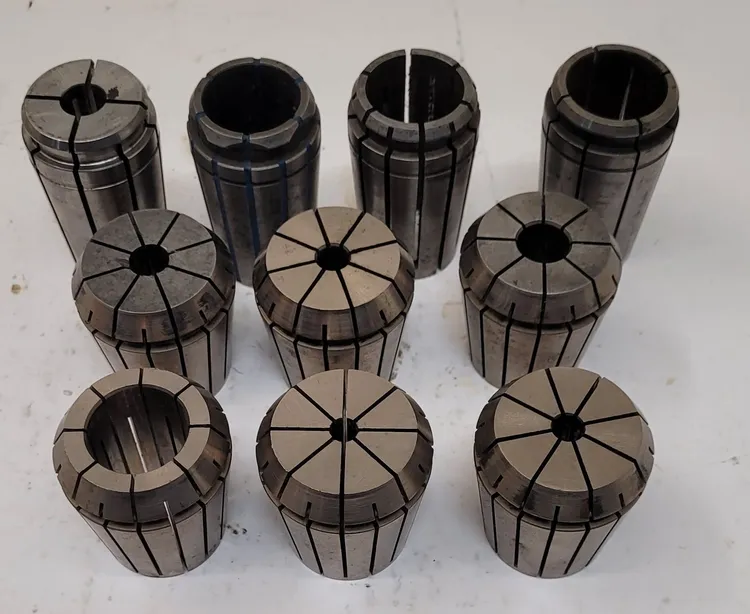 Enhance your toolkit with this used set of 10 Erickson Collets. Sizes include 1/4in, 3/8in, 1/2in, 1in, and more, ensuring versatility for various applications. Perfect for professionals seeking reliable performance in tooling and accessories.