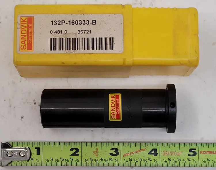 New Sandvik Coromant 132P-160333-B Cylindrical Sleeve available! Ideal for precise tooling with a 1" DCONMS and 0.1875" DCONWS. Featuring axial concentric coolant entry and exit, ensuring optimal performance with an overall length of 3.3465".