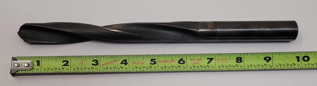 Kobelco 47/64in M35 Japan F5 Indexable Drill, used. Features a 9-7/8in overall length with a 3/4in straight shank, 2-3/4in long. Comes with 2 spiral flutes and a 6-5/8in flute length. Perfect for precise drilling tasks.