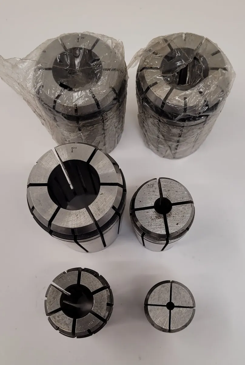 Enhance machining precision with a used set of 6 Erickson Collets in diverse sizes: 3 (1 inch), 1 (5/8in), 1 (21/64in), and 1 (5/32in). Ideal for tooling and accessory needs. Quality craftsmanship from trusted brand Erickson.