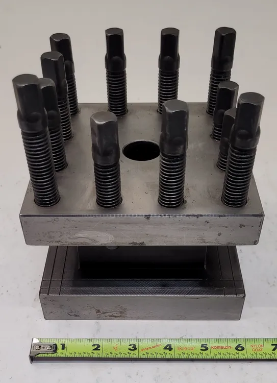 UNBRANDED Lathe Tool Post Holder, model: Lathe Tool Post Holder. Used condition. Dimensions: H: 4in, W: 6in, L: 6in, Gap: 2in, Thickness: 1in. Ideal for lathe tooling tasks requiring a 6 square inch tool post holder.