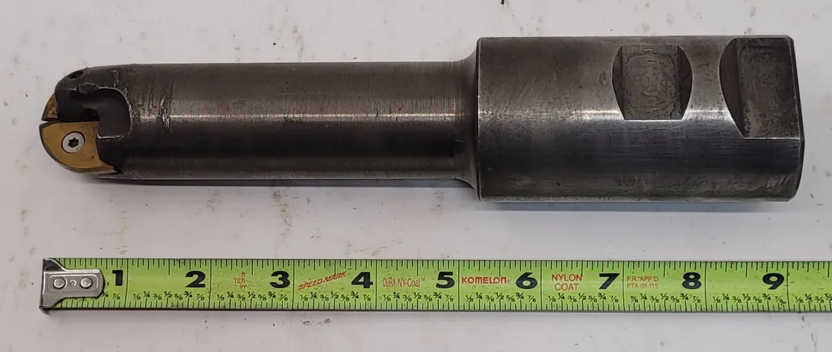 Enhance your machining process with the used Mold Masher 1.5in Ball Nose Insert Cutter. Featuring a 9-1/8in OAL, 3-1/4in straight shank, and 1.50in cutter end diameter, it's an ideal choice for precise tooling needs.