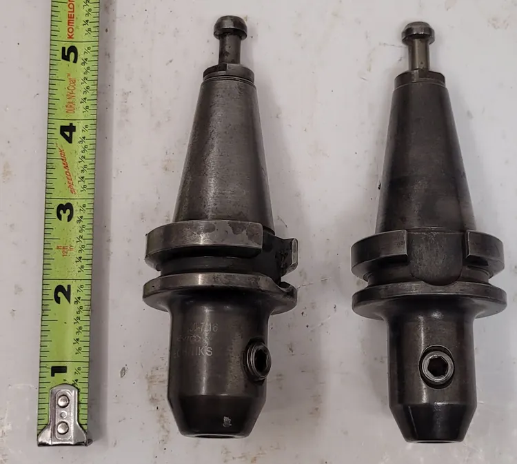Used Techniks SYIC 17130 CAT 30 End Mill Holder set of 2. Features CAT 30 taper, 5-1/4in OAL, and bore IDs of 7/16in and 3/8in. Ideal for precise tooling applications.