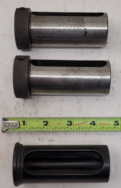 Used Rotary Tool Holder Bushing set of 3 with various sizes. Includes sizes 1/2 and 3/4 in. Ideal for tooling and accessory needs. Manufacturer unspecified. Model: Rotary Tool Holder Bushing. Condition: Used.