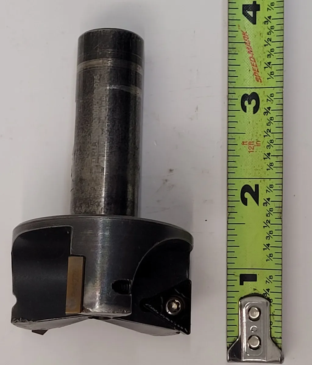 Dorian E90-200-TC3-075 90 Degree Indexable End Mill by Dorian Tool is perfect for your machining needs. Features 5/8" cutting depth, 2" diameter, and 3-insert capacity. Shank diameter is 3/4", overall length 3-1/4". Includes Torx Key T15. Used condition.