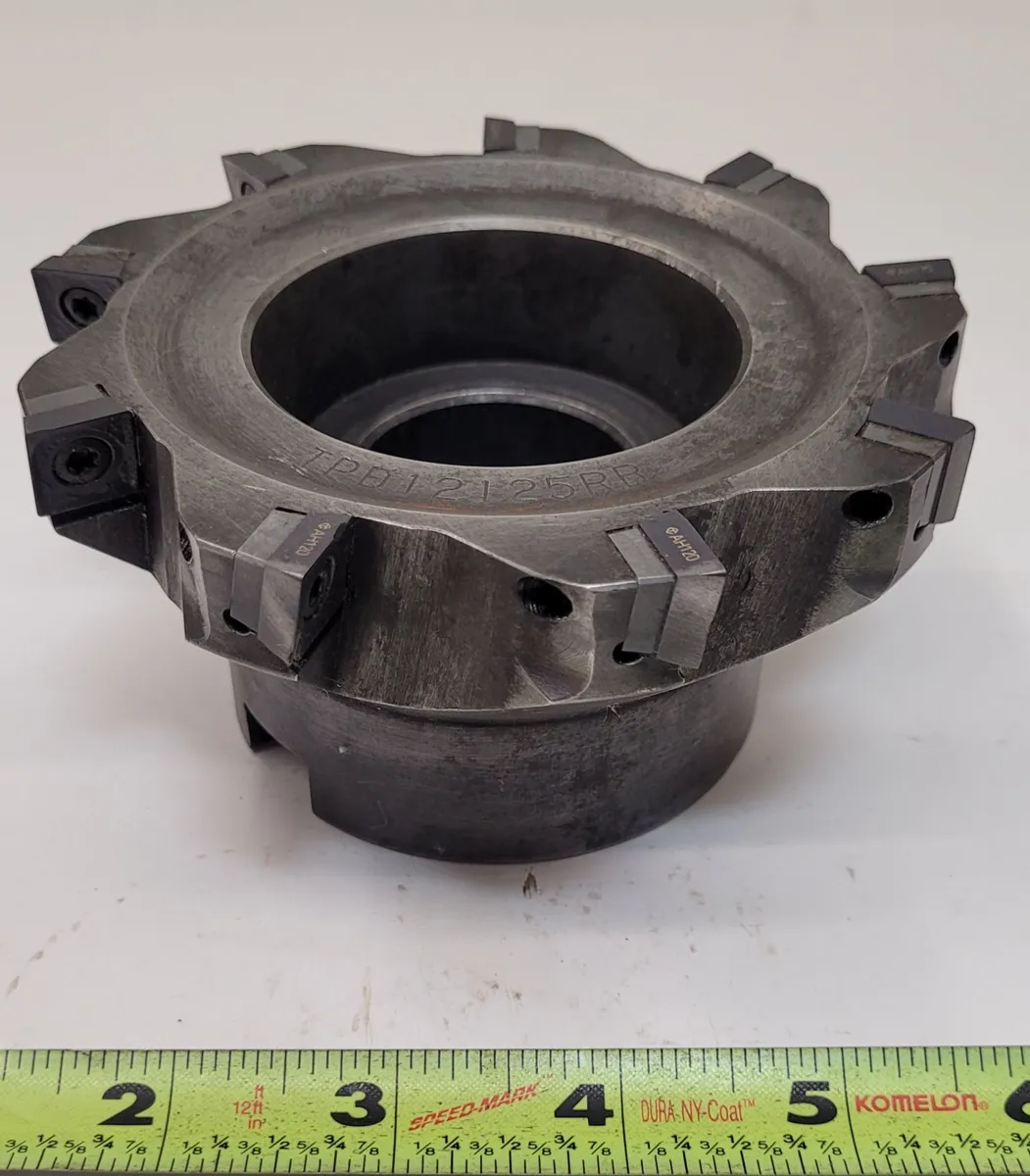 Tungaloy TPD12125RB End Mill, ideal for shoulder milling. Features include a 4.92in cutting diameter, 9 flutes, 2.48in OAL, and 1.5in arbor hole. Right-hand orientation, this used tool offers reliable performance in tooling applications.